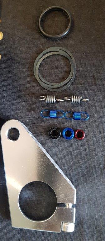 Anodized billet alu bracket. Crank pully with custom bolt, washer and belt.
